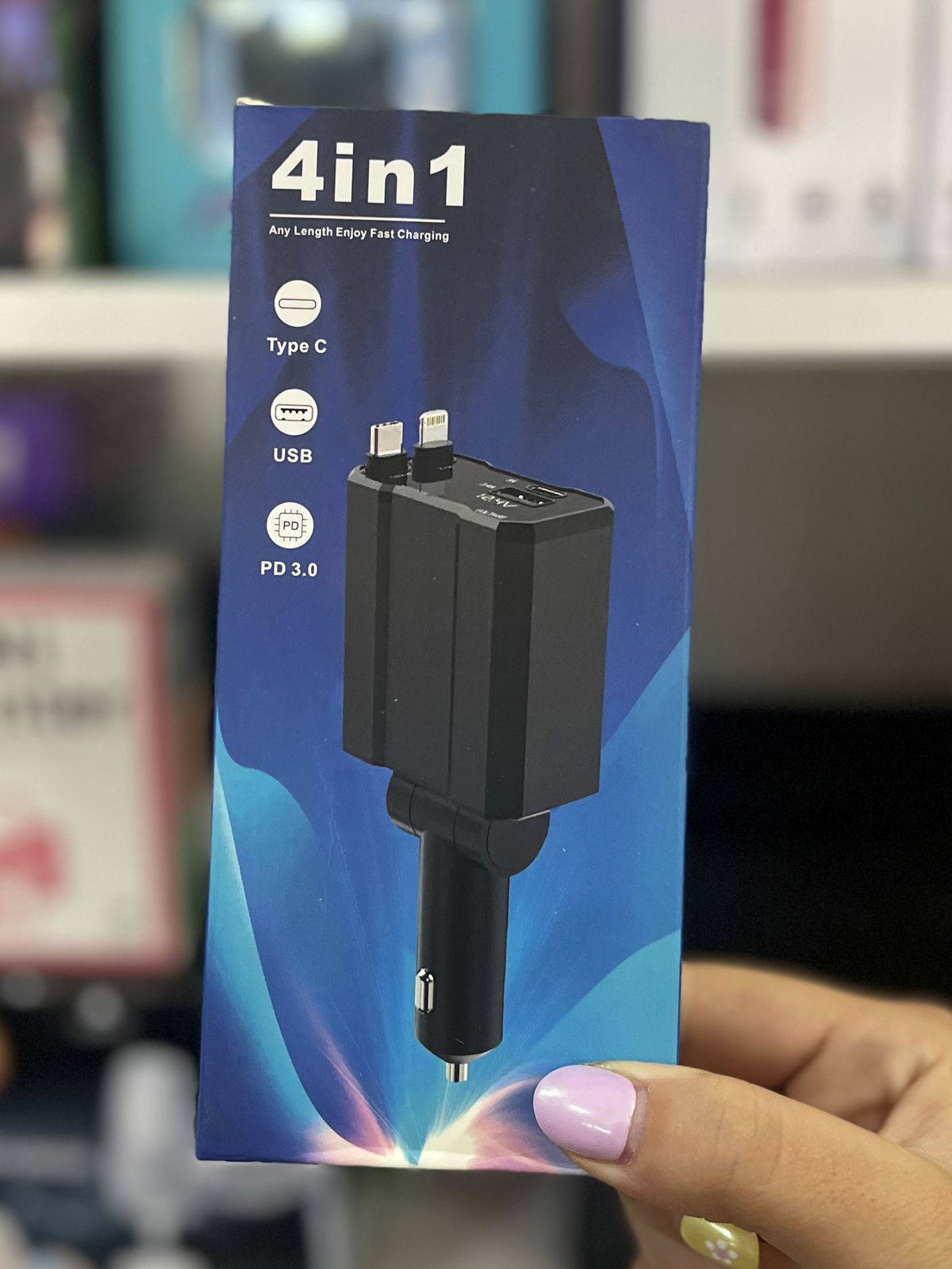 Incluye conexiones para iPhone, USB, USB–Tipo C y cable Tipo C retráctil, para que puedas cargar varios dispositivos al mismo tiempo.